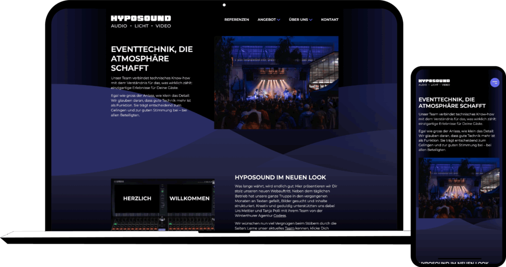 Die Hyposound AG steht für Eventtechnik, getragen von hoher Fachkompetenz, innovativer Technologie und echter Kundennähe. Das sanft renovierte Erscheinungsbild und der neue Webauftritt spiegeln die Professionalität des engagierten Teams perfekt.